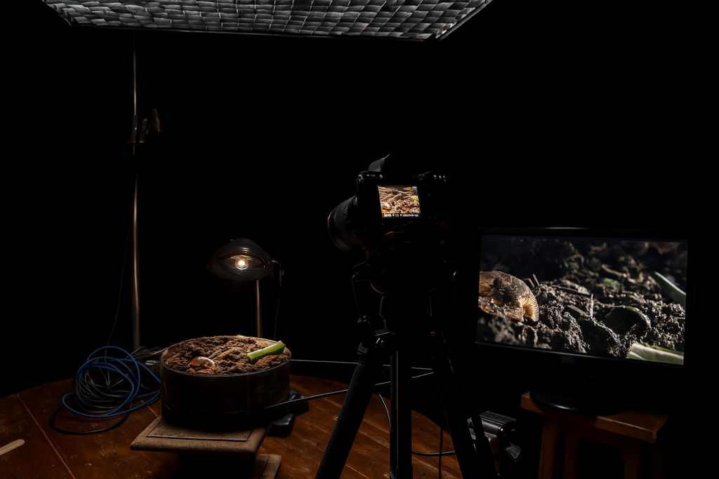 Dans ce projet, j’ai été embauché en tant que chef opérateur animalier pour réaliser une séquence tournée en studio, consacrée aux cloportes. L’objectif était de filmer ces arthropodes sous différents angles et de documenter, lorsque les conditions le permettaient, leur comportement d’accouplement.